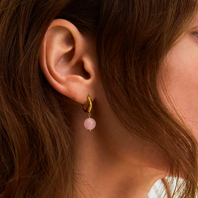 • Fine små hoops i organiske former, som fuldendes med en smuk rosa sten