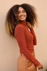 • Blusen måler i str. 34: 58 cm fra yderst på skulderen til bunden af blusen / 8 cm høj krave, som kan folde ned