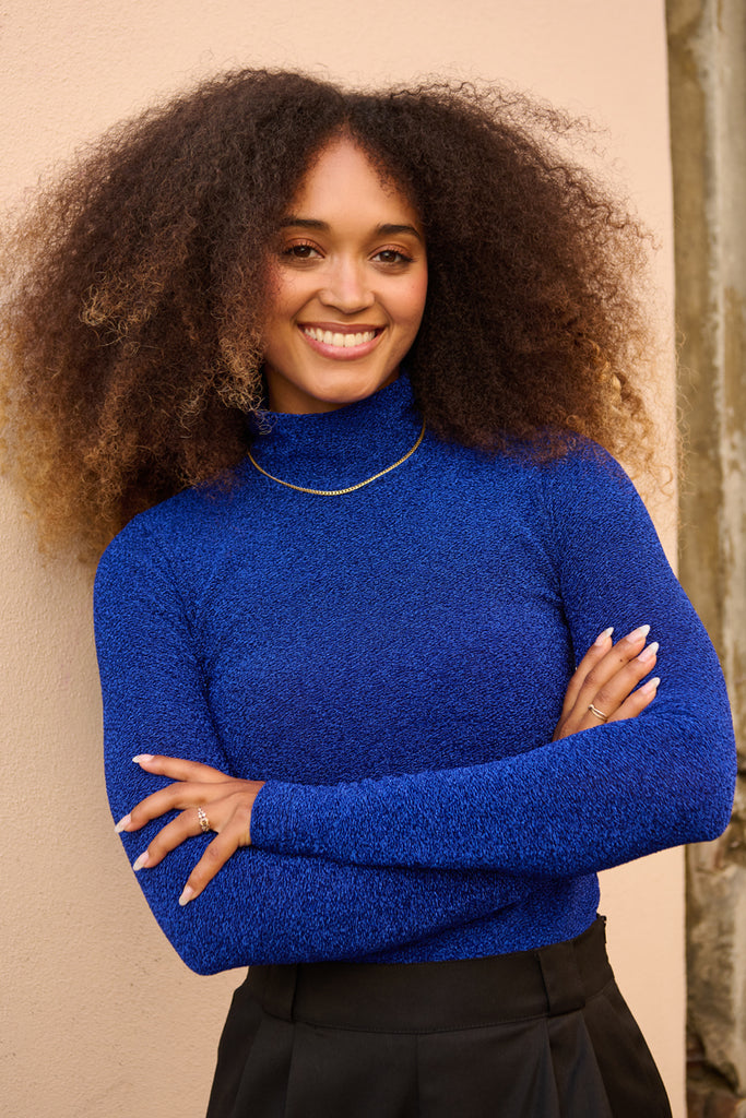 • Super strechy højhalset bluse i funklende glimmer kvalitet