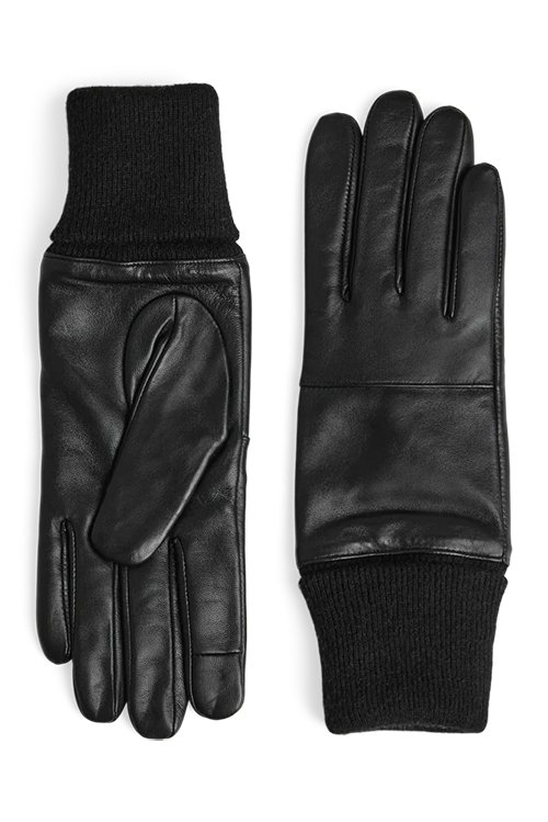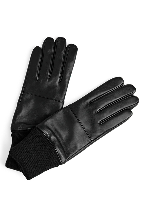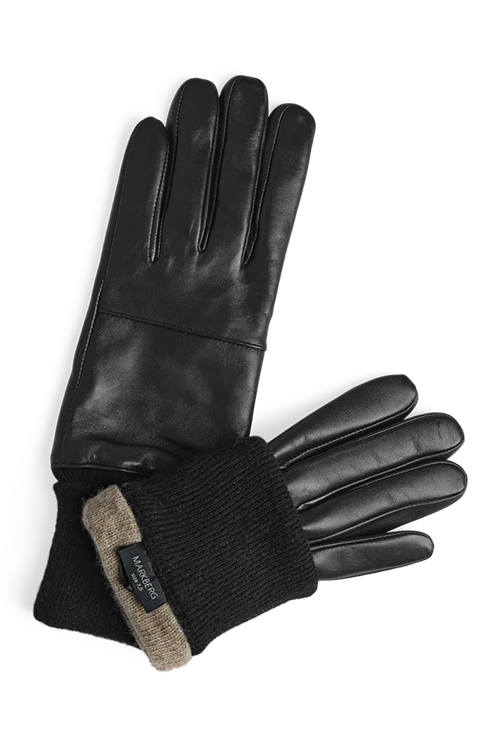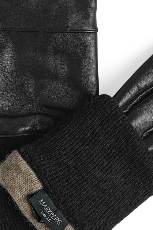 Farve: Sorte handsker / Sort ribkant / Sandfarvet foér