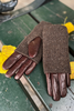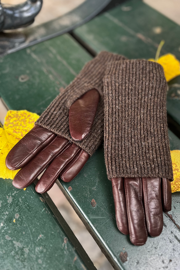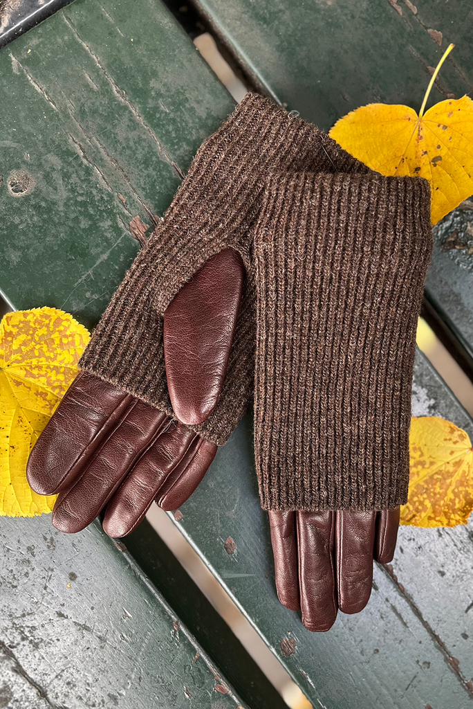 Farve: Latte farvet skind / Sandfarvet foér / Mørkebrunt strik