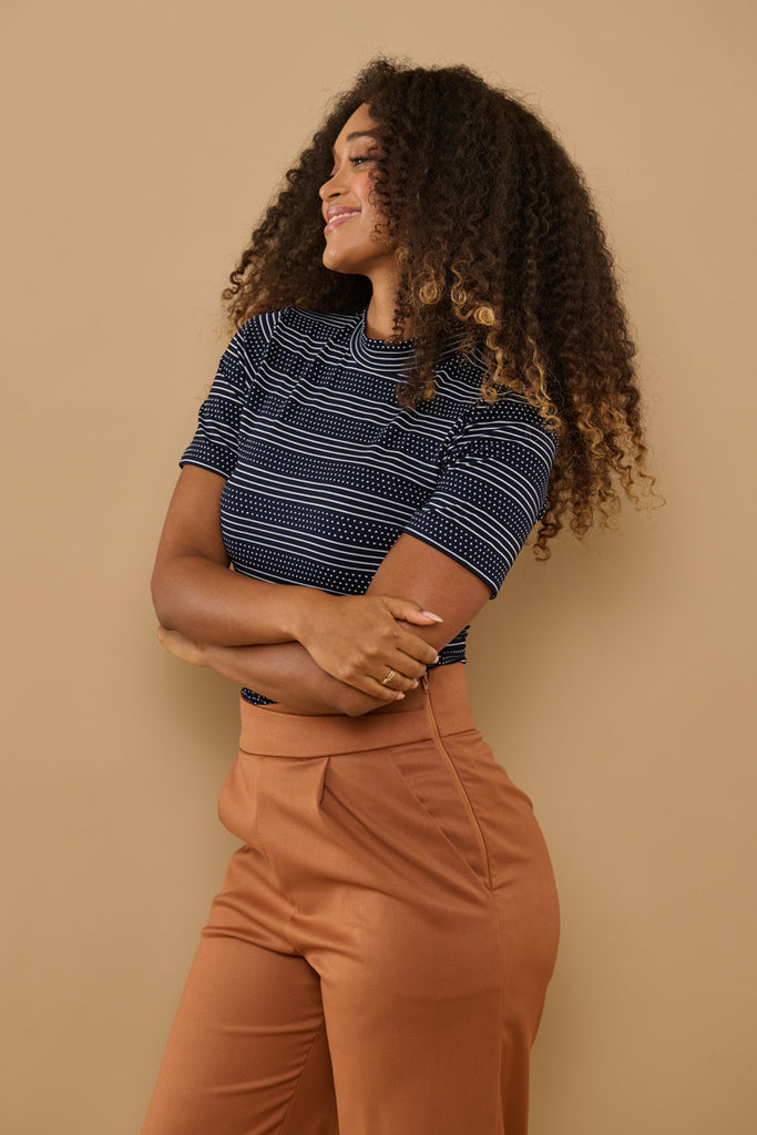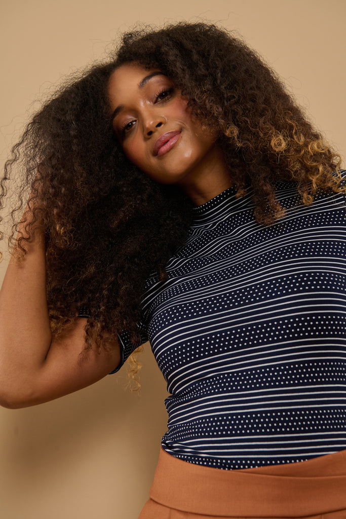 Farve: Mørkeblå med hvide prikker & striber