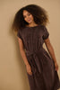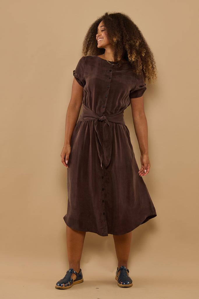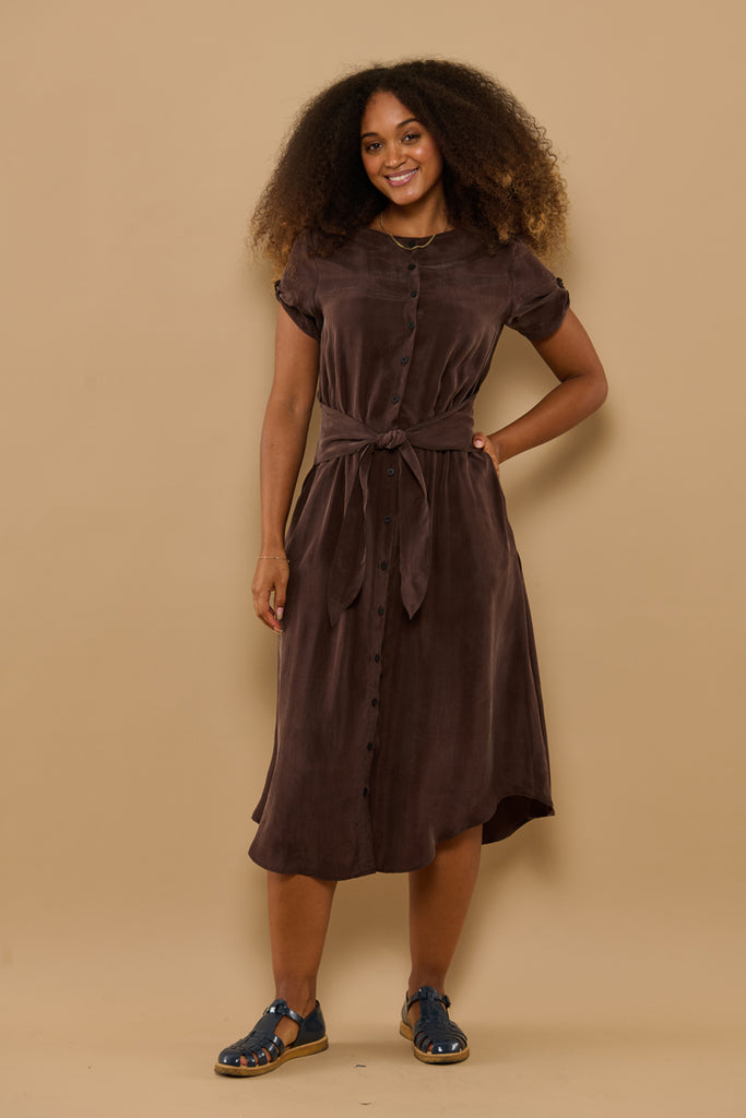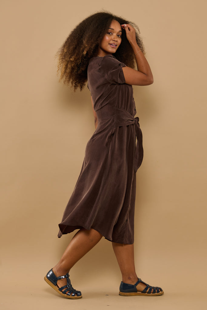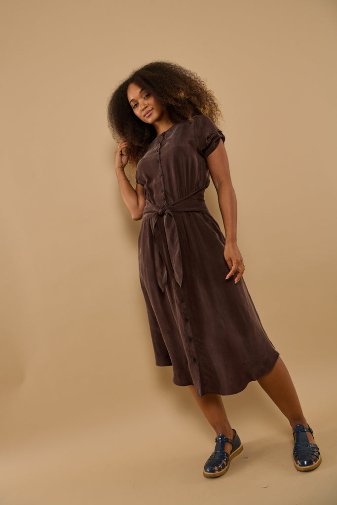 • Kjolen måler i str 38: Bryst 102cm og der skal være ca. 8-10cm rørlighedsvidde mellem dit brystmål og kjolens mål / Taljen er variabel med elastik & bindebånd / Længden total fortil 115cm (hals til bund) / Skørtet fra taljeoverskæring til bund 76cm