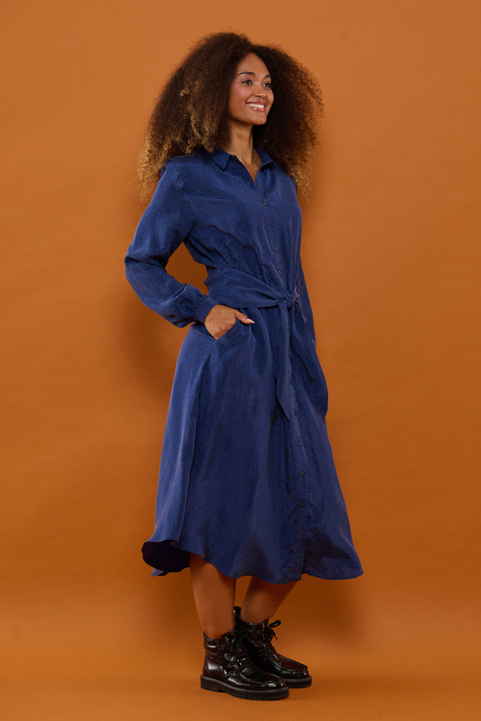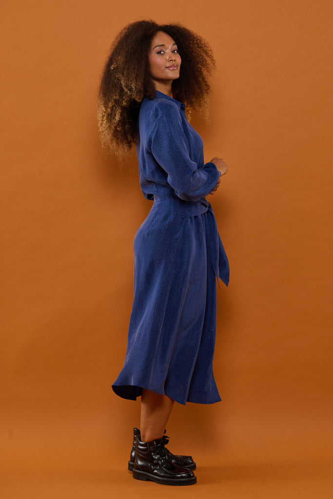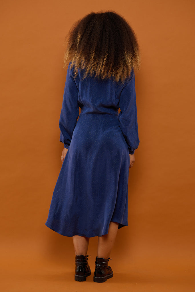 - Kjolen måler i str 38: Bryst 102cm og der skal være ca. 8-10cm rørlighedsvidde mellem dit brystmål og kjolens mål / Taljen er variabel med elastik & bindebånd / Længden total fortil 115cm (hals til bund) / Skørtet fra taljeoverskæring til bund 76cm