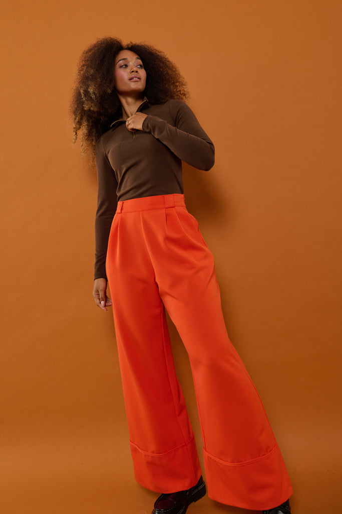 - Blusen måler i str. 34: 58 cm fra yderst på skulderen til bunden af blusen / 6 cm høj krave