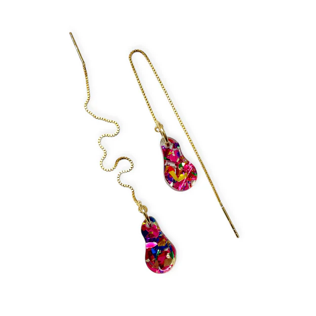 ByFossdal Drip 'n' Chains Øreringe / Red confetti