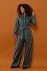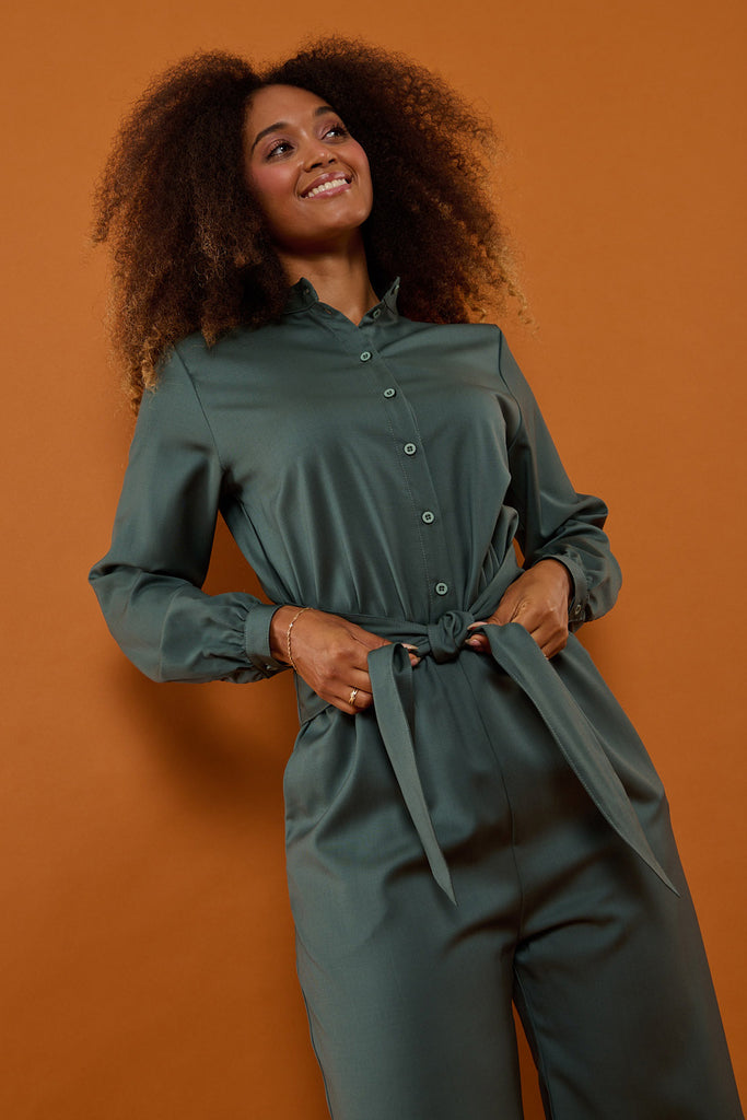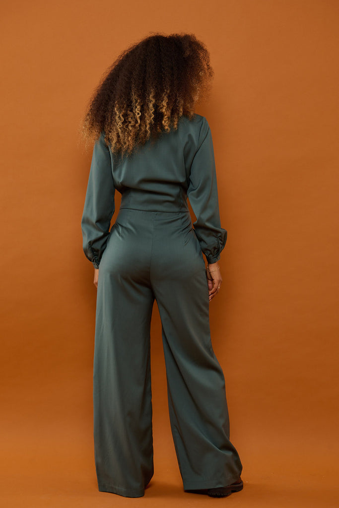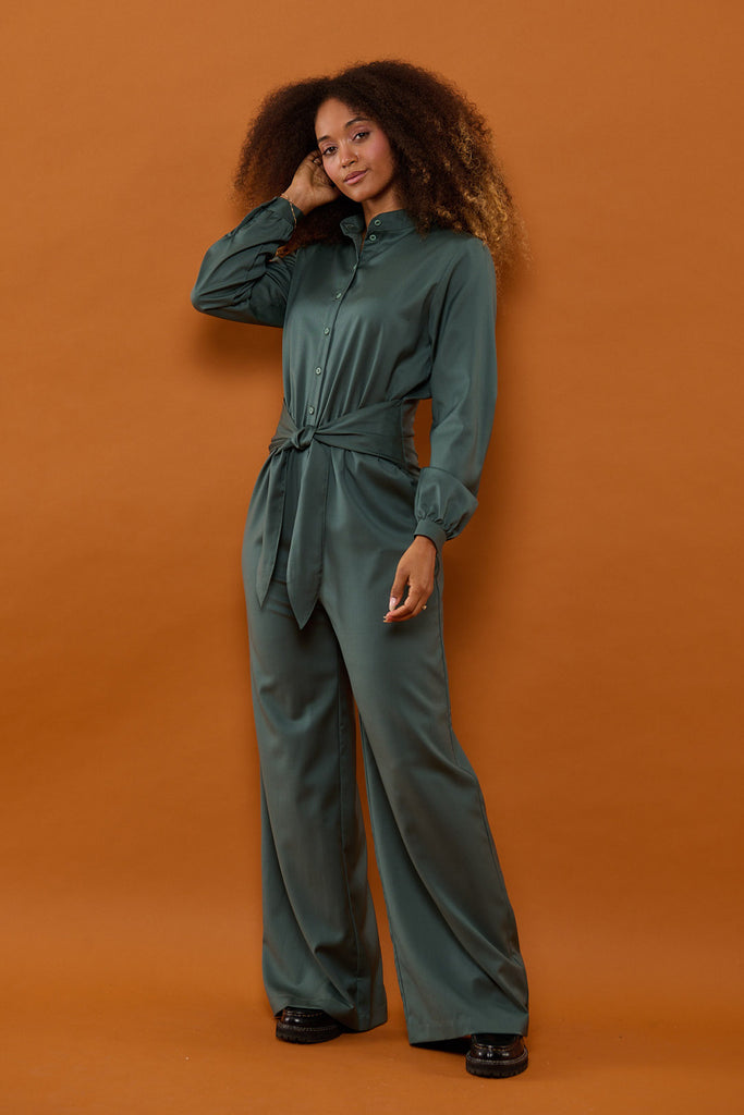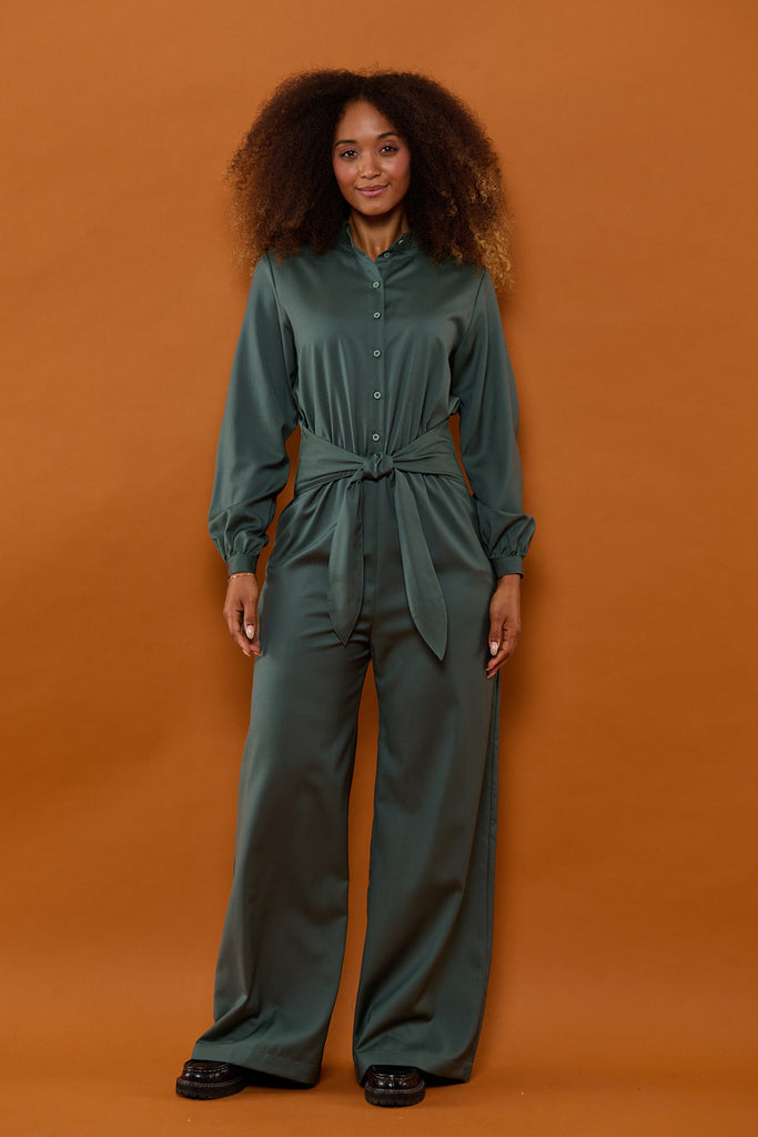 - Taljeret buksedragt med brede og løse bukseben