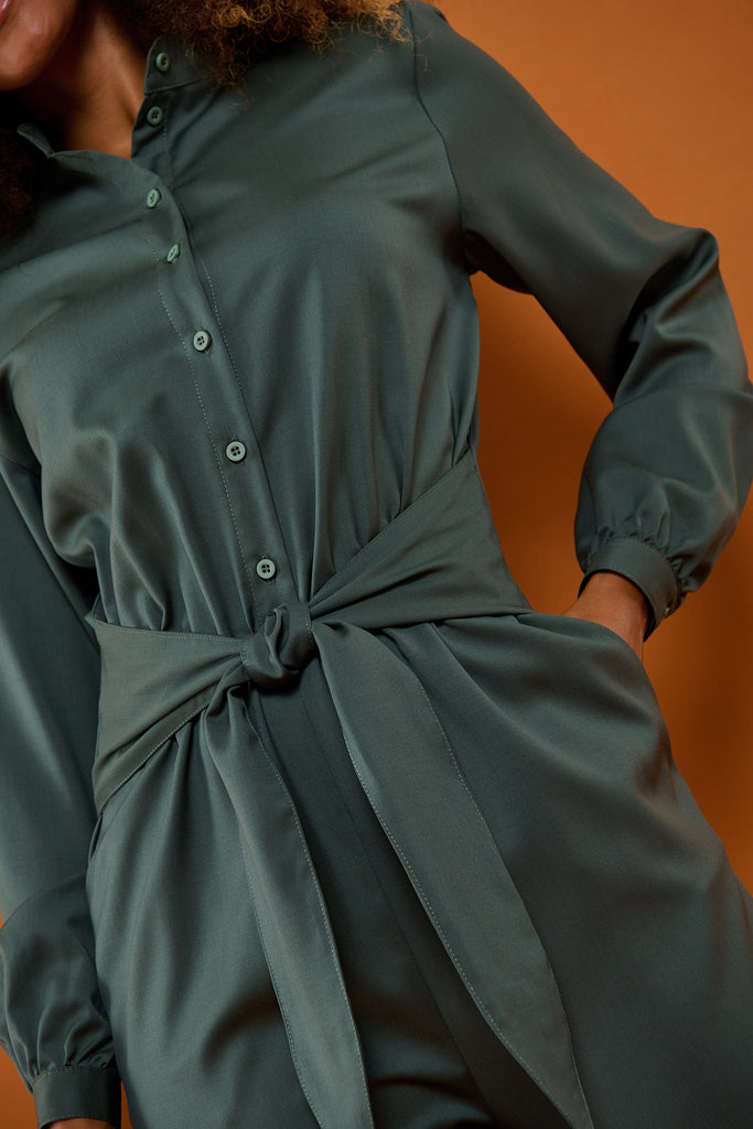 - Dragten knappes fortil med små matchende knapper