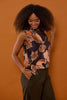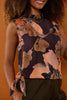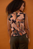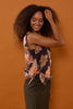 Farve: Mørkebrun baggrund med sorte smukke blomster i jordtoner & peach nuancer